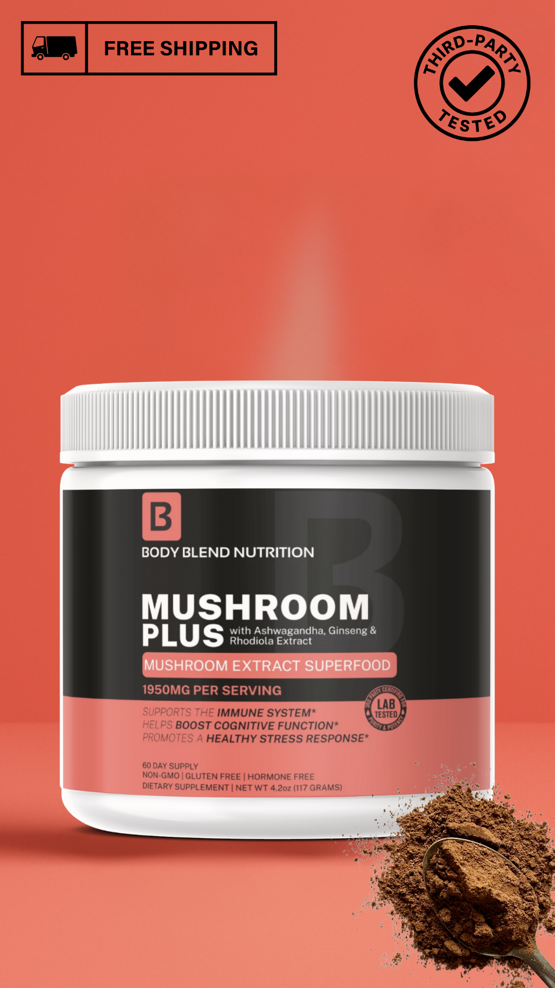 - Mushroom Plus (Adaptogens) — 60 scoops
